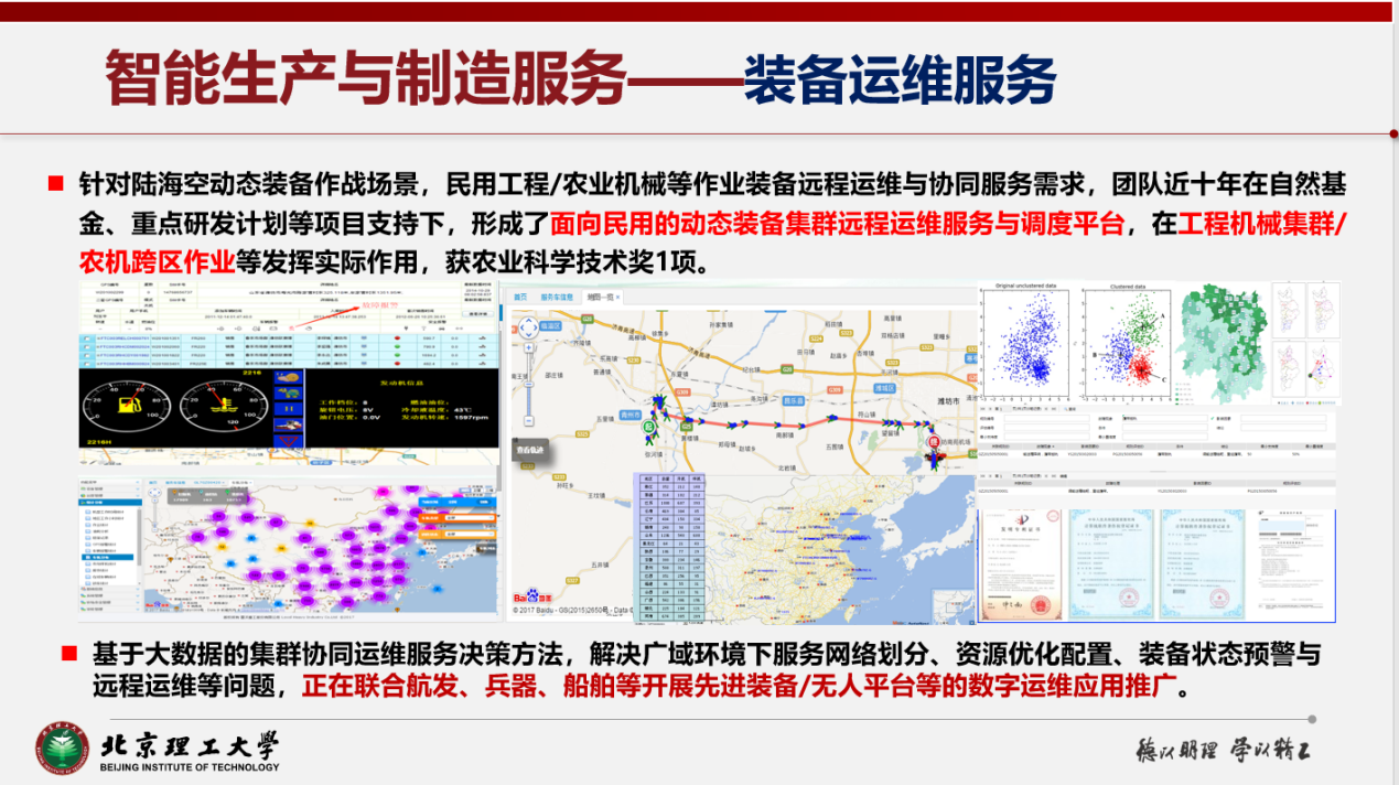 以智能生产和服务系统为研究对象,提出知识发现与能力耦合的生产系统智能优化与决策理论,建立了智能生产系统规划设计、布局仿真、柔性重构的技术体系,开展了包括智能生产线能力规划、布局优化、多AGV协同控制、能耗约束的生产系统智能优化等技术研究;针对装备远程运维服务需求,领先开展了动态分布式装备集群的维护服务网络设计与服务调度研究,开发了服务网络设计、服务资源配置与智能服务调度系统。