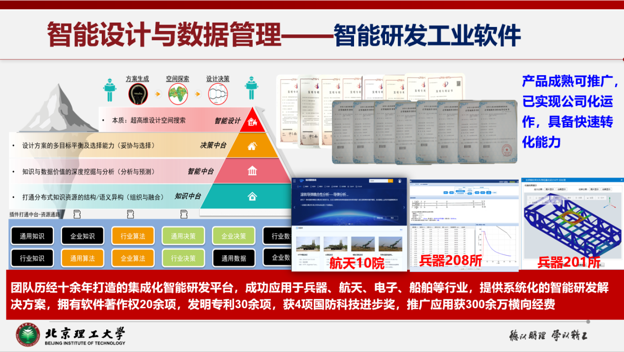 建立了大规模工程知识与数据管理模型,形成了工程知识驱动的智能设计技术体系,涵盖基于系统工程的复杂装备研发模式、多模态信号驱动的智能交互、小数据下高精度实时产品性能预测、知识图谱驱动的工程知识问答以及数字双胞胎驱动的智能设计方法;研究了基于复杂网络的大数据建模方法,以及复杂技术网络驱动的装备创新设计技术;开发了面向多色、多材料、多尺度工艺结构的3D打印建模方法,实现了产品的外观、宏微观结构以及材料布局的一体化设计与建模。