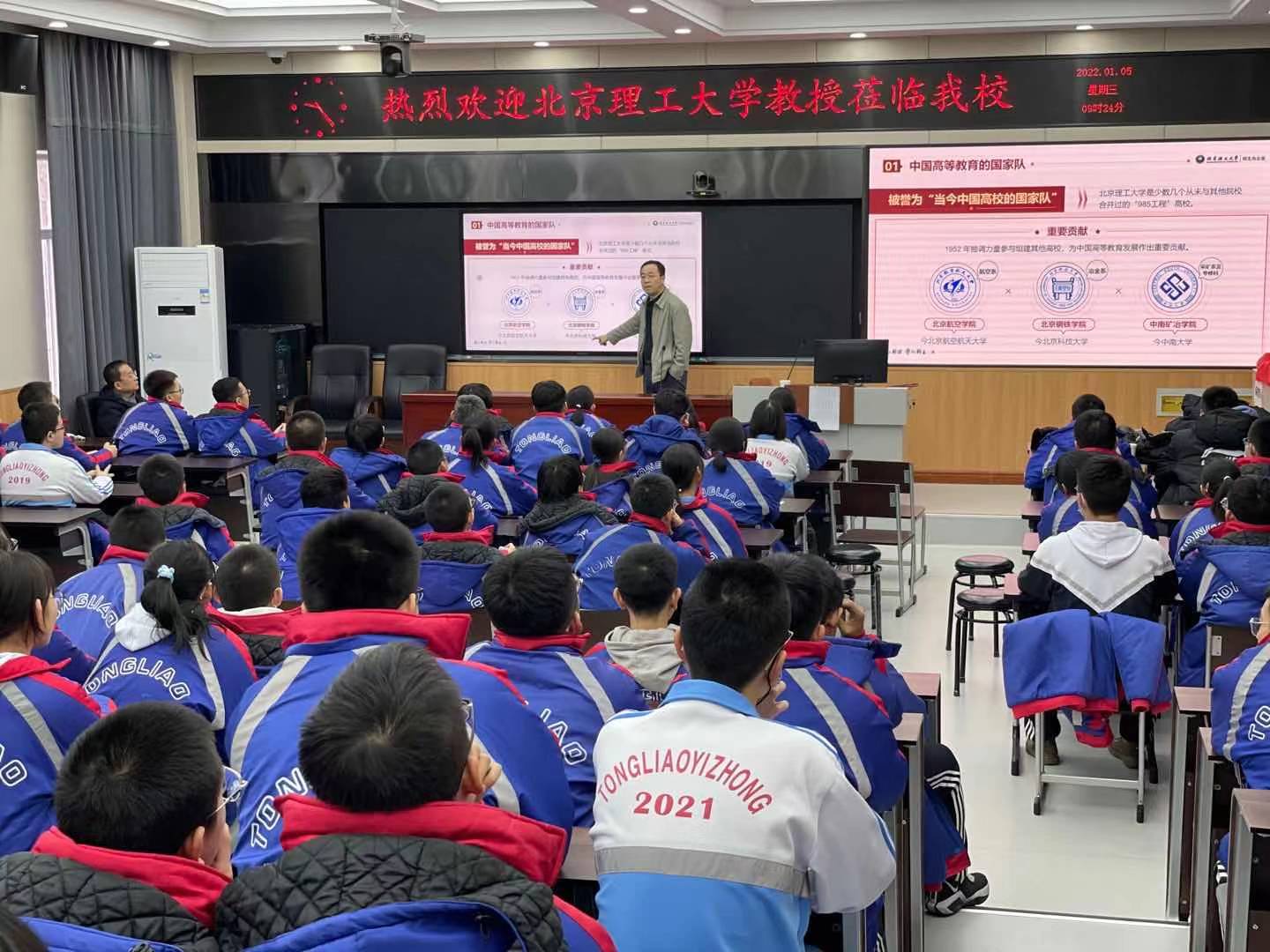 招生组在通辽第五中学举行了优秀生源基地授牌仪式暨人才培养座谈会。通辽市教育局副局长田向阳,通辽第五中学校长王子忠、党委书记白茹、副校长沈润生、副校长高占清等参加了座谈会。仪式结束后,王文中教授作了题为“相约北理 共筑梦想”的主题宣讲,高一、高二年级学生代表及高三年级学生家长代表参加了此次宣讲。招生组随后在通辽第一中学、通辽实验中学召开了两场宣讲会,通辽第一中学校长陈久明,通辽实验中学校长周玉、副校长陈玉国等参加了宣讲会。