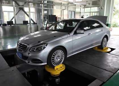 (说明:可进行整车道路模拟实验、实现车辆振动分析、路面谱复现、整车垂向动力学特性实验验证。整车道路模拟实验台单轮推力可达14吨,行程400mm,最高激励频率可达100Hz。)