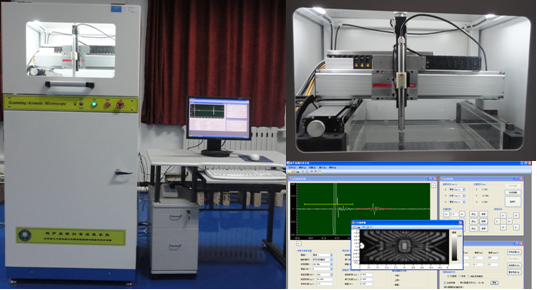 在国家自然科学基金重点项目等资助下,自主研制了一套高频超声显微镜,应用于半导体和电子封装缺陷检测与失效分析、电路板焊接质量检测与分析、材料织构观测与研究、生物医学等领域的无损检测与观察。
