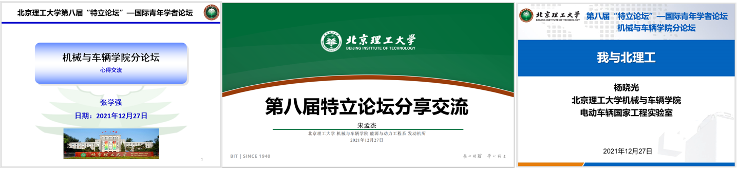 车辆系杨晓光教授通过“我与北理工”的经验介绍了从初识北理工到选择加入老王论坛 的经历,特别是入校前与北理工电动车辆团队合作研发全气候电池与电动大客车的特别经历,特别指出了学院在帮助海外青年学者申报人才项目方面所做的细致周到的工作,为参会学者提供了宝贵的经验。