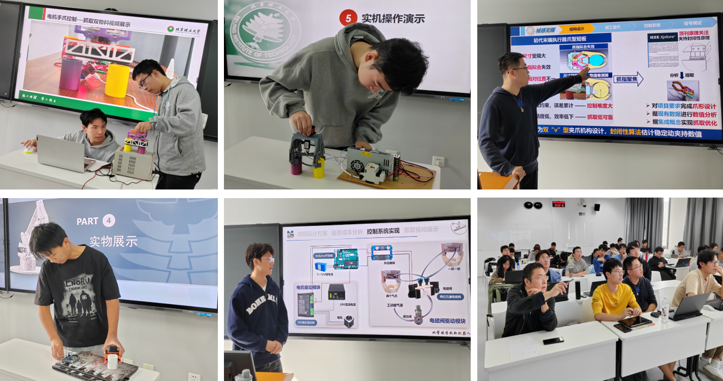 近日,智能制造工程专业和智能制造与智能车辆专业49名学生的“智能机电系统设计与开发”项目制课程中期评价答辩会在良乡校区文萃楼I605成功举行。课程主讲教师付铁、指导教师叶勤及各项目组组长参与评价。答辩会由付铁主持。