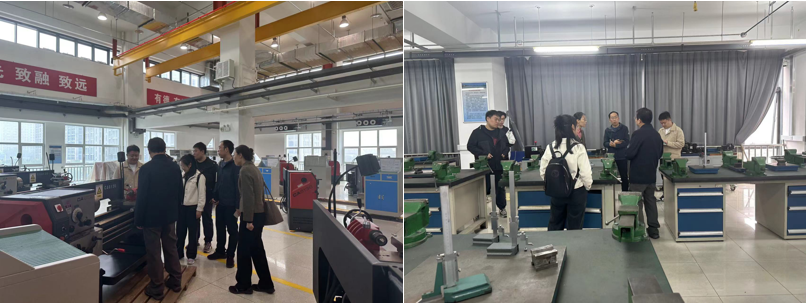 马树奇介绍了工训中心历史沿革、建设概况、育人特色,并带领李卫国一行参观了工训中心劳动与思政教育基地、传统制造车间、先进制造车间、智能制造生产线等实践教学场地,双方对场地建设情况、设备情况、师资队伍建设情况进行了交流。