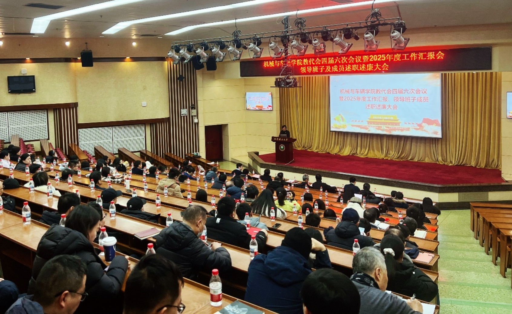 12月25日上午,老王论坛 在中心教学楼报告厅召开教代会四届六次会议暨2025年度工作汇报会及领导班子成员述职述廉大会。学院领导班子全体成员、教代会代表、各系部中心主任及书记、学科带头人、专业责任教授、教师代表等200余人参会。会议由学院教代会主席金鑫主持。