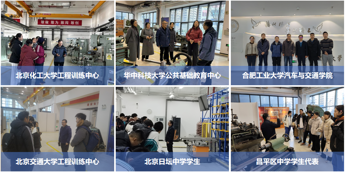 11月25日至12月12日,北京化工大学工程训练中心、华中科技大学公共基础教学中心、合肥工业大学汽车与交通学院、北京交通大学工程训练中心相继来访。来访单位重点参观了传统与数控加工实训区、智能制造生产线及劳动教育基地,围绕新工科背景下实训课程体系重构、跨学科项目式教学改革、实践场地建设及师资队伍建设等议题展开深度研讨。各方表示,将加强协同联动,共同探索工程实践教育创新模式。
