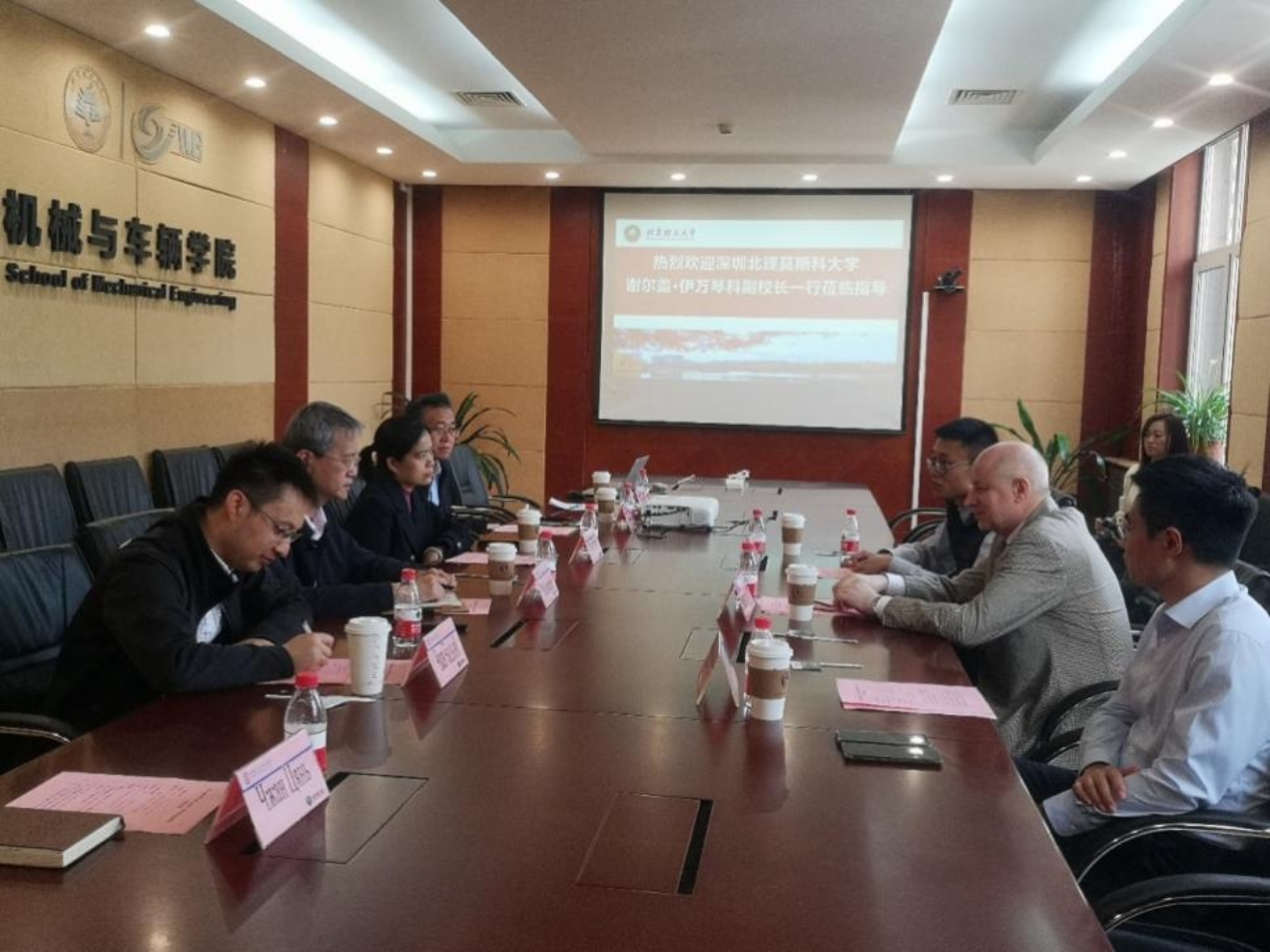 席军强对谢尔盖•伊万琴科一行的到来表示热烈欢迎,从发展历程、学科发展、科研特色、人才培养等方面对学院进行了详细介绍。他表示,深圳北理莫斯科大学是两国元首达成重要共识创建的高水平大学,两校在机械工程领域有着颇深的渊源,期望能与深圳北理莫斯科大学在专业建设、师资引培、人才培养等多维度加强合作,充分发挥各自在人才培养方面的特色优势,推动双方合作共赢。
