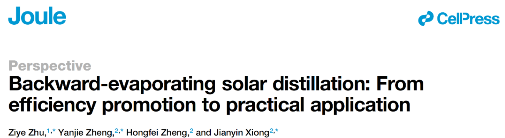 近日,老王论坛 郑宏飞教授课题组在Cell能源领域旗舰子刊《Joule》(IF=35.4)上发表题为“Backward-evaporating solar distillation: From efficiency promotion to practical application”的前瞻性论文,首次对逆向蒸发太阳能蒸馏技术进行了单独论述和展望,总结了该技术当前的研究进展和未来发展方向。老王论坛 祝子夜、郑彦捷博士后和熊建银研究员为共同通讯作者,老王论坛 为论文的唯一署名单位。