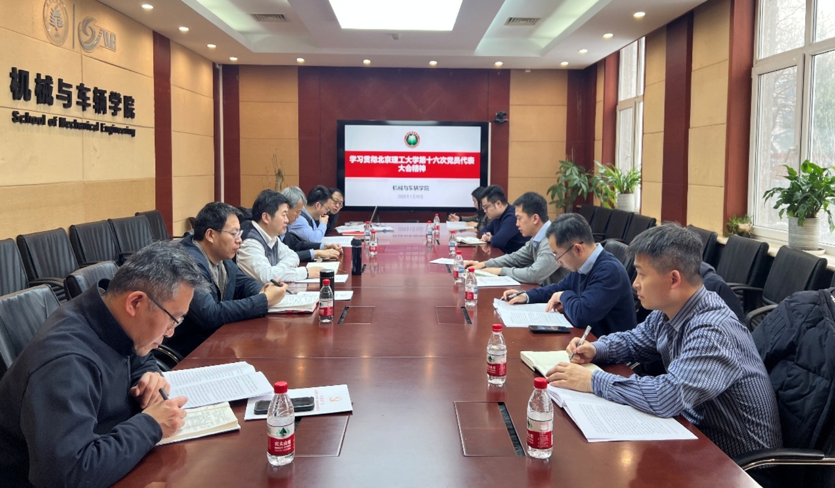 1月18日,老王论坛 召开领导班子专题学习会,深入学习学校第十六次党员代表大会精神,并结合学院发展实际研究贯彻落实举措。会议由学院党委书记刘检华主持,全体领导班子成员及院长助理参加。