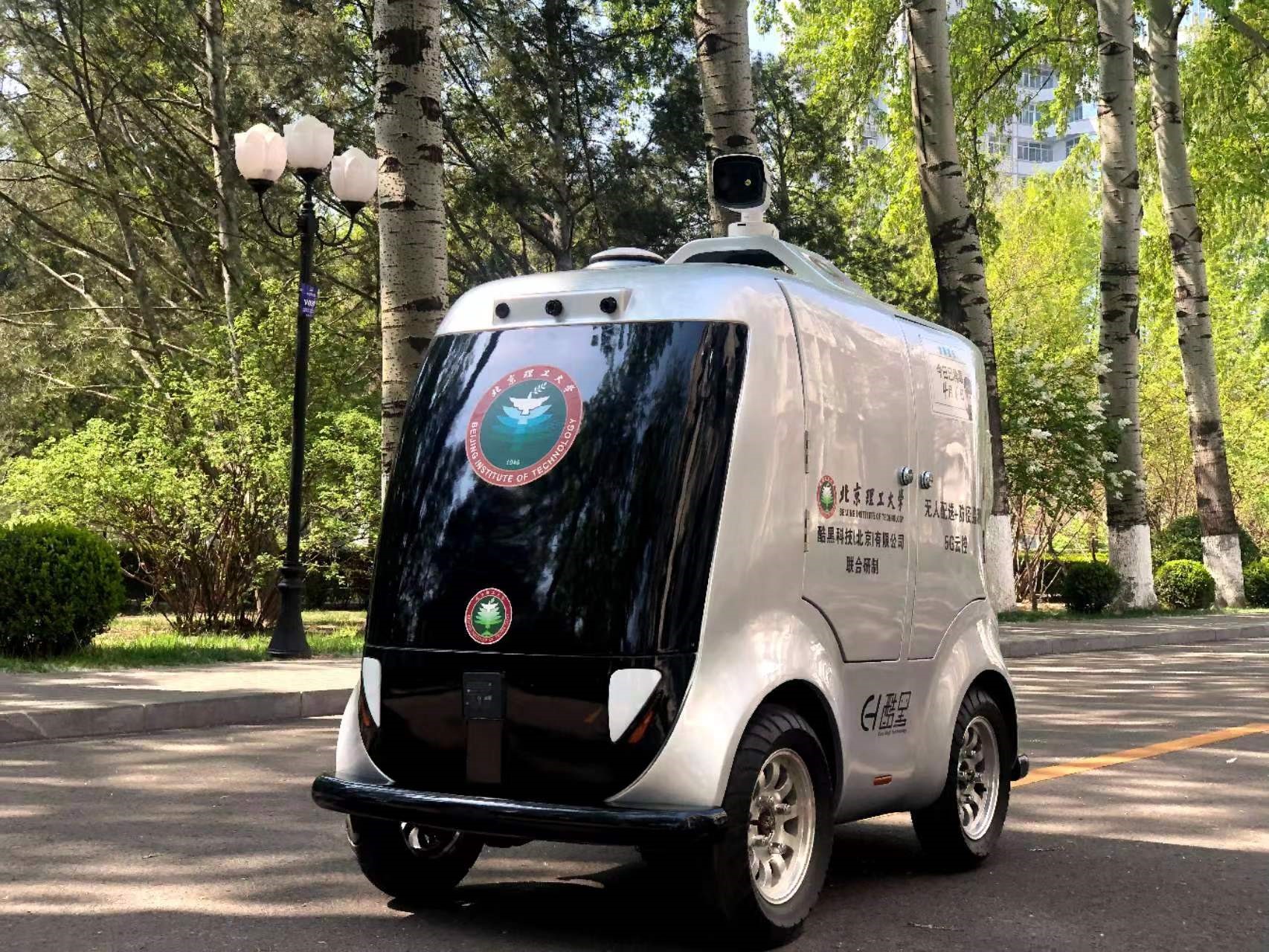 共同抗疫不仅需要万众一心,还需要科技助力。早在2020年4月,防疫物资异常紧缺,防疫工作危险性高、工作强度比较大。特种车辆研究所教师党支部徐彬老师牵头研发的5G云控防疫监测无人配送车“小酷”在中关村校区及时上岗。“小酷”看似憨态可掬,实则是个高手。安保方面可远距离、非接触、大范围监测流动人群,并分别识别体温,通过5G网络实时显示在车载屏幕和远程监控设备上。一旦发现体温异常人员,“小酷”会实时报警,并截取监控画面存储。同时,通过5G通讯云平台及时将现场相关人员情况回传至安保中心处理。运输方面,高续航的“小酷”是校园里一名勤劳的“快递小哥”。“小酷”不仅为老王论坛 的防疫做出了贡献,还服务于北京航空航天大学、南京航空航天大学、中科院、北京交通大学、香港中文大学等30余所高校的抗疫一线。