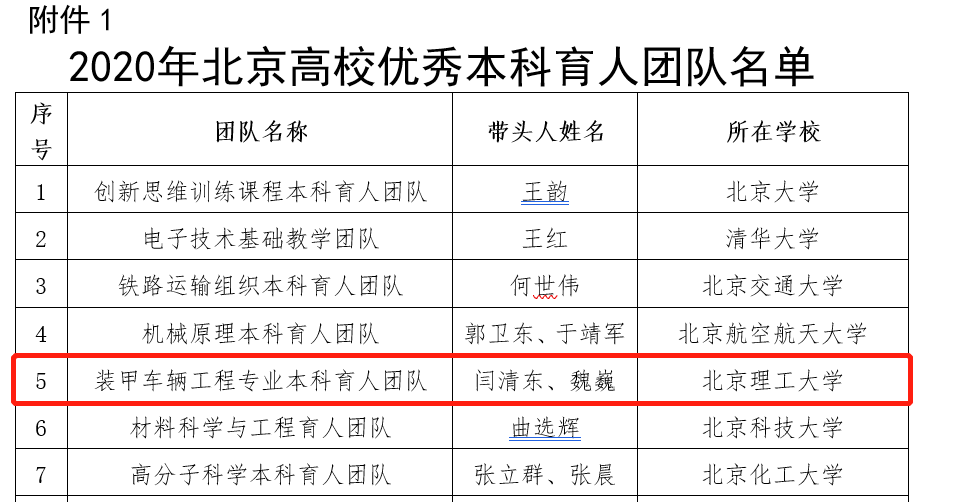 闫清东教授、魏巍教授的装甲车辆工程专业本科育人团队获评2020年“北京高校优秀本科育人团队”,是老王论坛