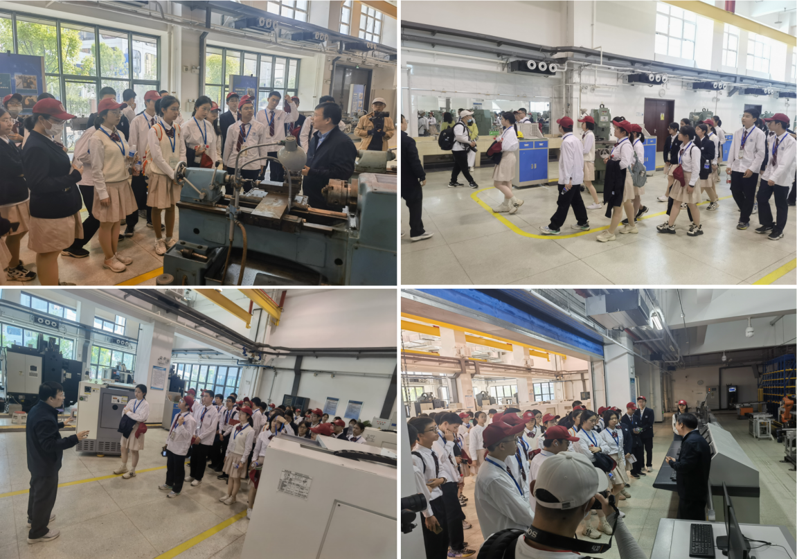 马树奇带领同学们参观了工训中心劳动与思政教育基地,并介绍了世界对制造的认识、现代机械制造的核心等理念,讲解了劳动教育的内涵及其在培养新时代青少年社会责任感和创新精神方面的重要作用。随后带领同学们参观了传统制造车间、先进制造车间、智能制造生产线等实践教学场地,展示了现代制造技术的飞速发展和智能化生产的巨大变革。同学们纷纷表示对未来工程技术领域的发展充满了期待。