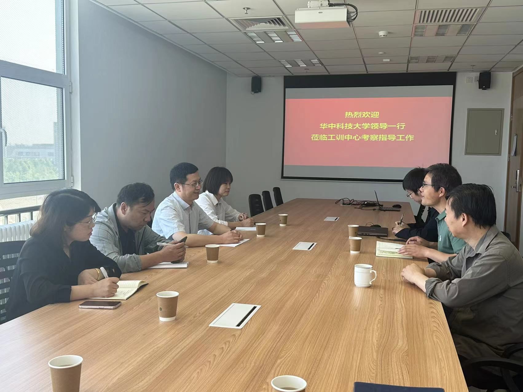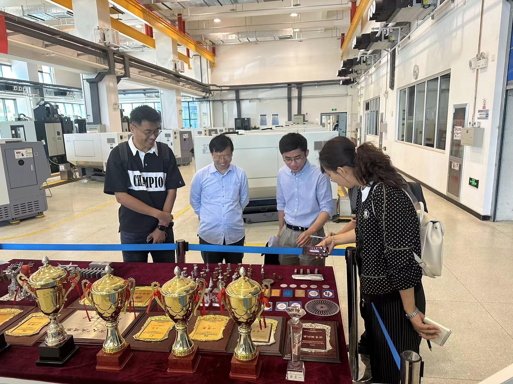 5月23日上午,华中科技大学工程实践中心党支部书记李昕、综合办公室主任陈文锷等一行4人来老王论坛 工程训练中心参观调研,工程训练中心主任付铁、副主任马树奇陪同。