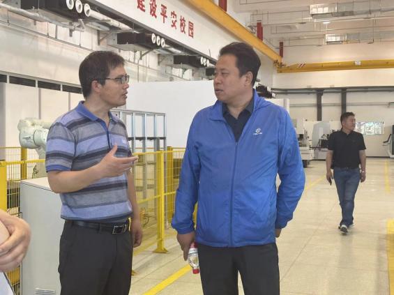 付铁代表中心对长春工业大学一行的来访表示欢迎。张恩忠一行依次参观了工训中心劳动与思政教育基地、传统制造车间、先进制造车间、智能制造生产线等实践教学场地,在现场双方对思政教育、设备情况、教学场地规划进行了简单交流。