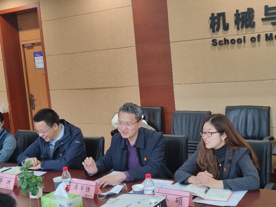 党委书记席军强,党委副书记、副院长孙硕,党委委员、车辆系党总支书记邹渊,生涯发展服务中心副主任邹晓航,电车四党支部书记章伟及支部委员,共15人参加活动。活动由孙硕主持。