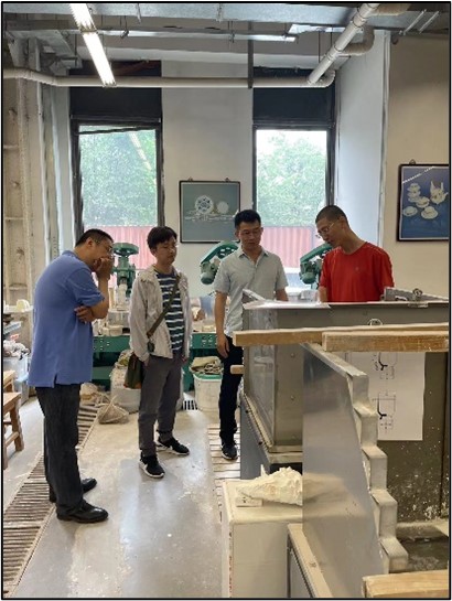 一行人在清华美院郑林庆老师的耐心讲解下,先后参观了金属焊接实验室、金属工艺实验室(传统工艺与材料研究文化和旅游部重点实验室(金属工艺与材料研究))、陶瓷艺术与设计实验室、玻璃工艺实验室(“传统工艺与材料研究文化和旅游部重点实验室(玻璃工艺与材料研究)”)、3D打印与喷绘公共服务实验室、摄影实验室。