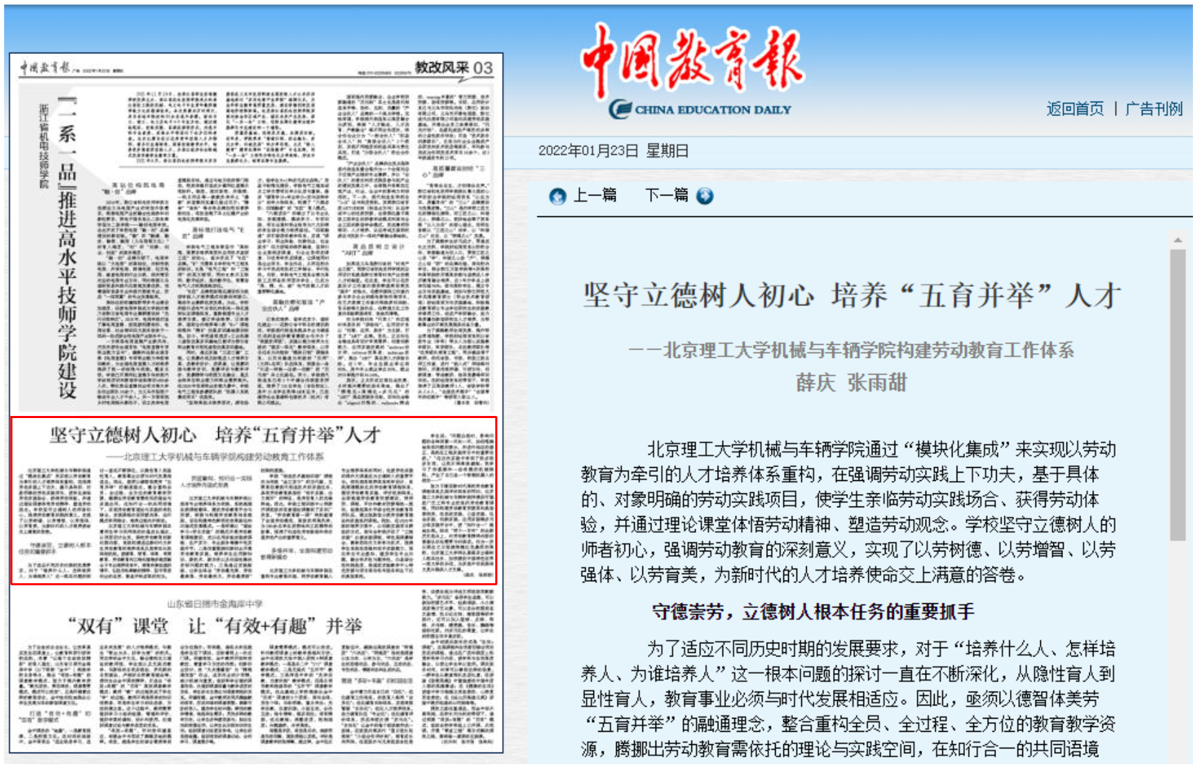 原文链接:《中国教育报-教改风采栏目》坚守立德树人初心 培养“五育并举”人才
