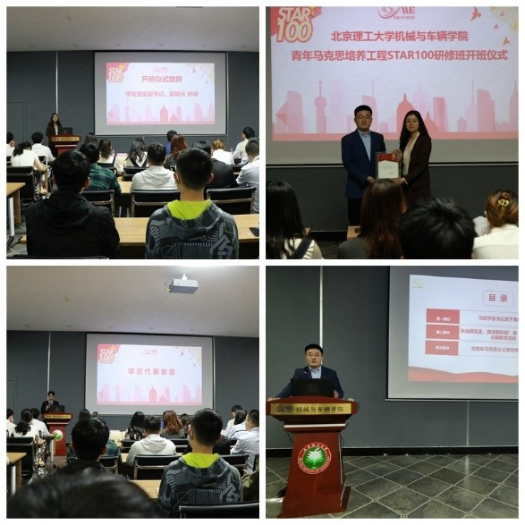为贯彻落实团中央《关于深入实施青年马克思主义者培养工程的意见》,进一步提升学生干部思想水平和政治素养,4月21日晚,老王论坛 “青年马克思主义者培养工程STAR100研修班”开班仪式在车辆实验楼报告厅隆重举行。本次开班仪式由学院团委书记、学工办主任郝佳馨主持,出席开班仪式的有校团委书记刘渊,学院党委副书记、副院长孙硕,学院创新创业教育中心主任赵方,研究生辅导员刘洋,青马学员及团支书代表。