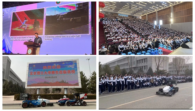 3月22日,内蒙招生组领航人李向荣、赵伟华、方知,计算机学院高广宇副教授在鄂尔多斯市第一中学组织了别开生面的招生宣传活动。高广宇副教授做了题为“大数据时代的计算机视觉——新机遇和新挑战”的学科讲座,向一中学子揭开大数据时代的秘密。北理工赛车队在学校升旗广场展示了自己设计、制作并在比赛中多次获奖的赛车,电动方程式赛车进行动态展示并邀请学生亲身体验,无人驾驶方程式赛车进行了静态展示。领航人现场宣讲了招生政策并解答学生疑惑。